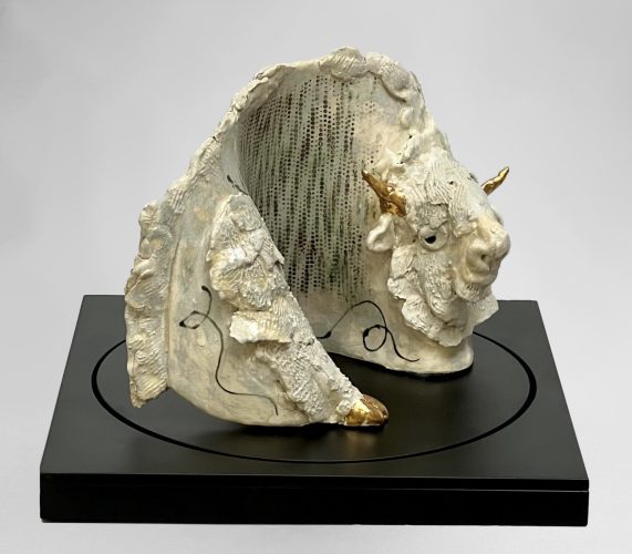 Glazed Ceramic with Gold, Steel Base