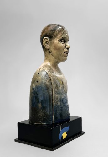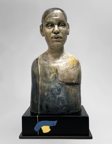 Glazed Ceramic on Painted Wood and Steel Base