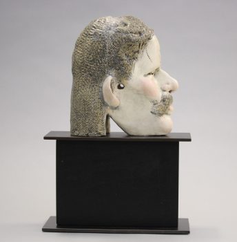 Glazed Ceramic on Wood and Steel Base
