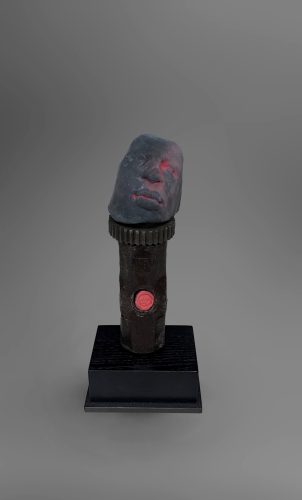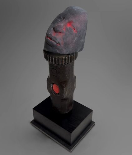 Glazed Ceramic, Found Objects, Wood and Steel Base
