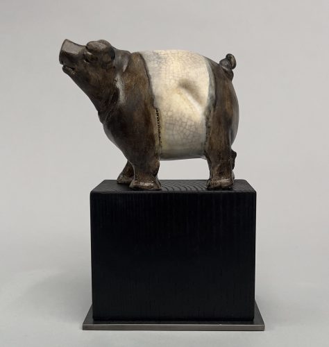 Glazed Ceramic on Wood and Steel Base